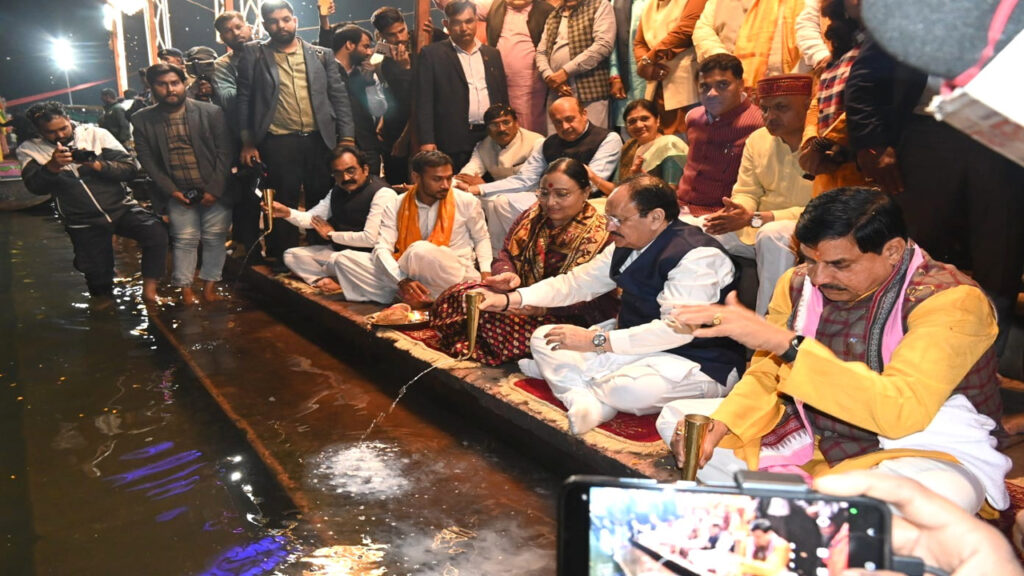 मुख्यमंत्री डॉ. मोहन यादव और केंद्रीय मंत्री जे.पी. नड्डा ने की पूजा-अर्चना, प्रदेश की समृद्धि की कामना
