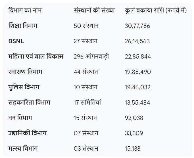 विद्युत कंपनी द्वारा जारी सूची के अनुसार, स्वास्थ्य से लेकर शिक्षा और पुलिस से लेकर वन विभाग तक, कोई भी विभाग भुगतान के मामले में पाक-साफ नहीं है। बकाया राशि का विवरण चौंकाने वाला है: